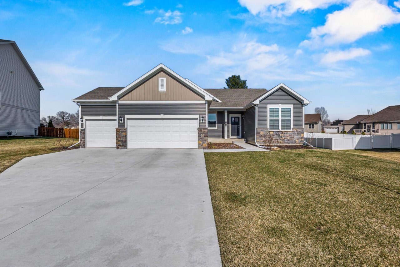 Showings start 4/9/26 ~ Welcome home to this stunning single-story new construction! Enjoy the ease of one-level living with a thoughtfully designed open floor plan. The kitchen impresses with a large center island that opens to the living room, where a beautiful electric fireplace and custom shelving create a warm and inviting atmosphere. The owner's suite is privately tucked in a back corner of the home and features a deluxe shower in the en suite bath. Two secondary bedrooms provide plenty of space for family or guests. Additional highlights include a 3-car garage and rough-in plumbing in the basement. With 1,700 square feet of unfinished basement space, the possibilities for customization are endless. The egress window even opens the door to adding an additional bedroom downstairs. Don't miss this incredible opportunity!