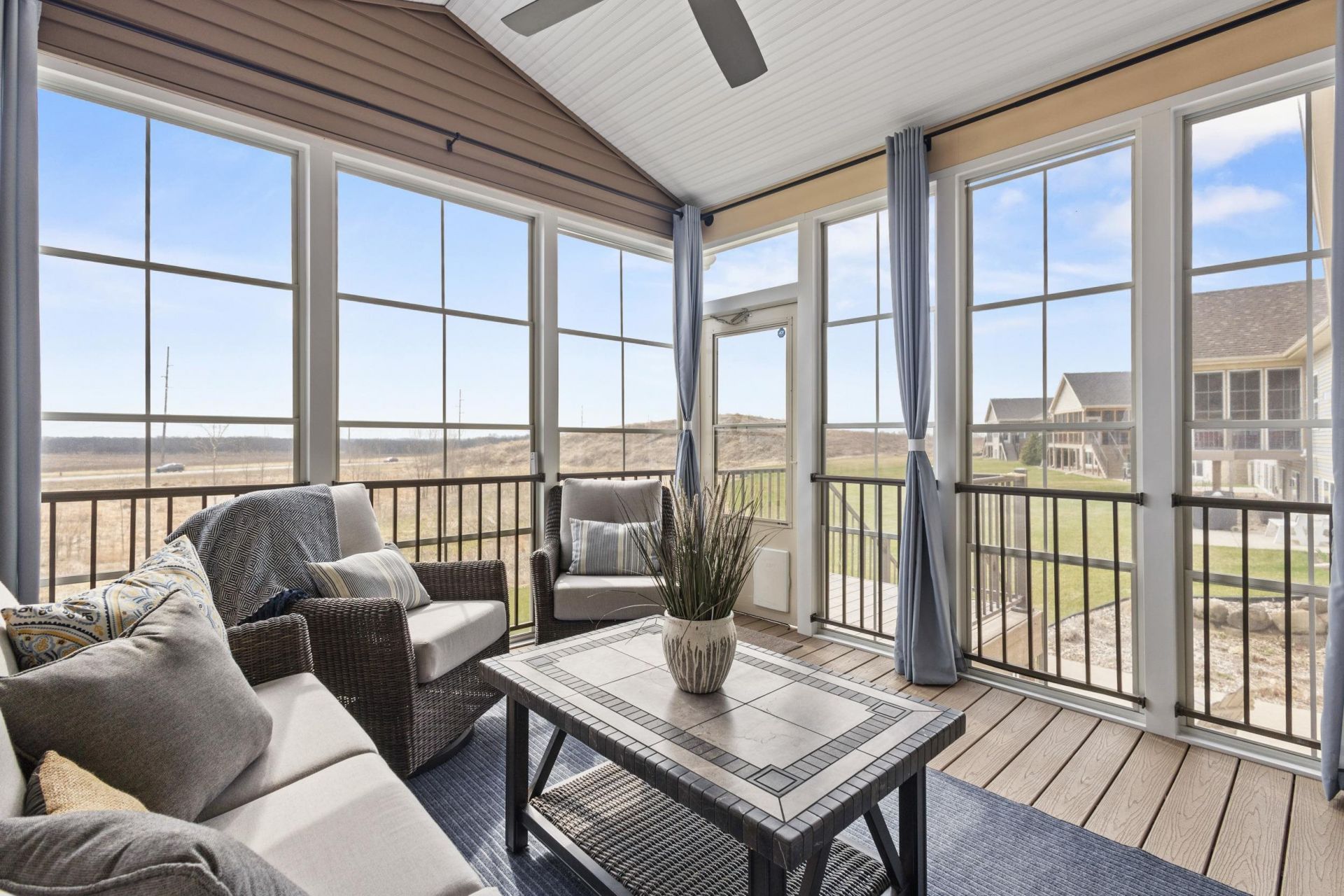 Single level living redefined in this zero-step entry luxury ranch condo overlooking green space! Vaulted ceilings, stunning hardwood floors, a gas FP create an inviting main living area w/ a gourmet kitchen anchored around a sleek granite island built for easy living & entertaining. Premium appliances include Sub-Zero refrigerator, Bosch gas range w/ hood, a newer dishwasher & washer/dryer. The primary suite is positioned to take in the views, w/ a spa-like ensuite featuring heated tile floors, double vanity, walk-in shower & a WIC. The southern-accent screened porch w/ Kool View windows becomes your everyday retreat, w/ direct access to the yard & private patio, perfect for quiet mornings or winding down at the end of the day. The finished, exposed LL adds flexibility w/ bright large windows, rec room, bedroom, full bath w/ heated floors, plus a den & workspace. Ideal for overnight guests, quilting studio, home office, or gym. Low-maintenance living just minutes from it all!