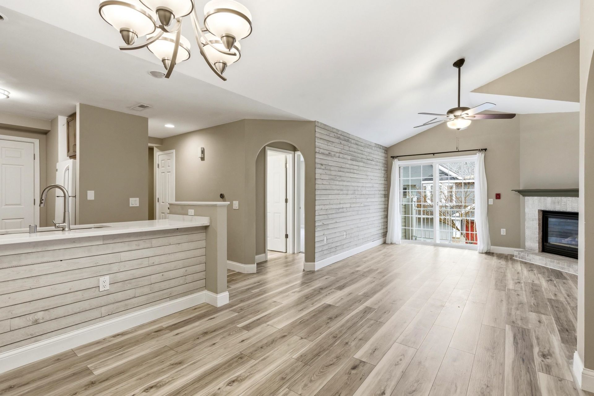 Move-in-ready West Madison condo. Spacious 2-bedroom, 2-bath home offers nearly 1,200 sq ft with vaulted ceilings that create a bright, open feel, plus a cozy fireplace for added charm. Recent 2025 improvements include new carpeting, fresh interior paint, custom blackout window treatments, and approximately $30,000 in interior and bathroom upgrades. The primary bath has been beautifully updated with a new tub, shower, vanity, and luxury vinyl tile flooring. Bathroom 2 recently refinished (2026). The kitchen and living areas showcase quartz countertops and stained maple cabinetry. Both bedrooms feature custom walk-in closets along with additional storage. Mechanical updates include a new water softener (2025), furnace (2019), and air conditioner (2020). Conveniently located near shopping, dining, parks, and commuter routes, this condo offers comfortable, low-maintenance living in a desirable West Side location. Seller offering closing cost credit for any closing prior to May 1st 2026!