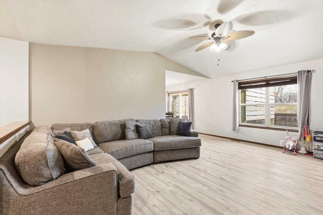 Stunning 3-BR, 2-BA ranch showcasing an inviting interior filled with natural light and soaring vaulted ceilings. The open-concept layout creates a seamless flow between the living room, spacious kitchen, and DA ideal for entertaining or everyday living. All 3 BRs are conveniently located on the main level, including a comfortable primary suite featuring a private bath and walk-in closet. A 2nd full BA and main floor laundry add to the home's functionality. The expansive lower level offers endless potential for future living space. Step outside to a patio overlooking a large, fenced backyard perfect for relaxing or gatherings. Complete with a desirable 3-car attached garage, this home checks all the boxes. 48 Hr. Binding Acceptance, seller reserves the right to accept an offer at anytime