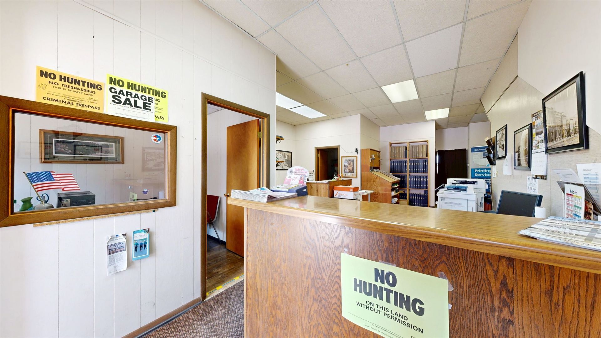 Versatile commercial opportunity! This property offers both business and residential potential under one roof. The main level is currently utilized as an office space for the local newspaper and features a functional layout including a private office, spacious main work area, large storage closet, two generously sized storage rooms, and a bathroom. An expansive unfinished basement provides excellent additional storage options. Above the commercial space, you'll find a nicely sized apartment with its own private exterior entrances, both front and rear, offering convenience and separation for tenants. The upper unit includes two bedrooms, one full bathroom, a kitchen with room for a dining table, and a dedicated laundry area. Off-street parking accessible from the rear, accommodates both tenant and employee needs. Whether you're looking to expand your business footprint, invest in rental income, or combine work and living space, this property presents flexible opportunities.