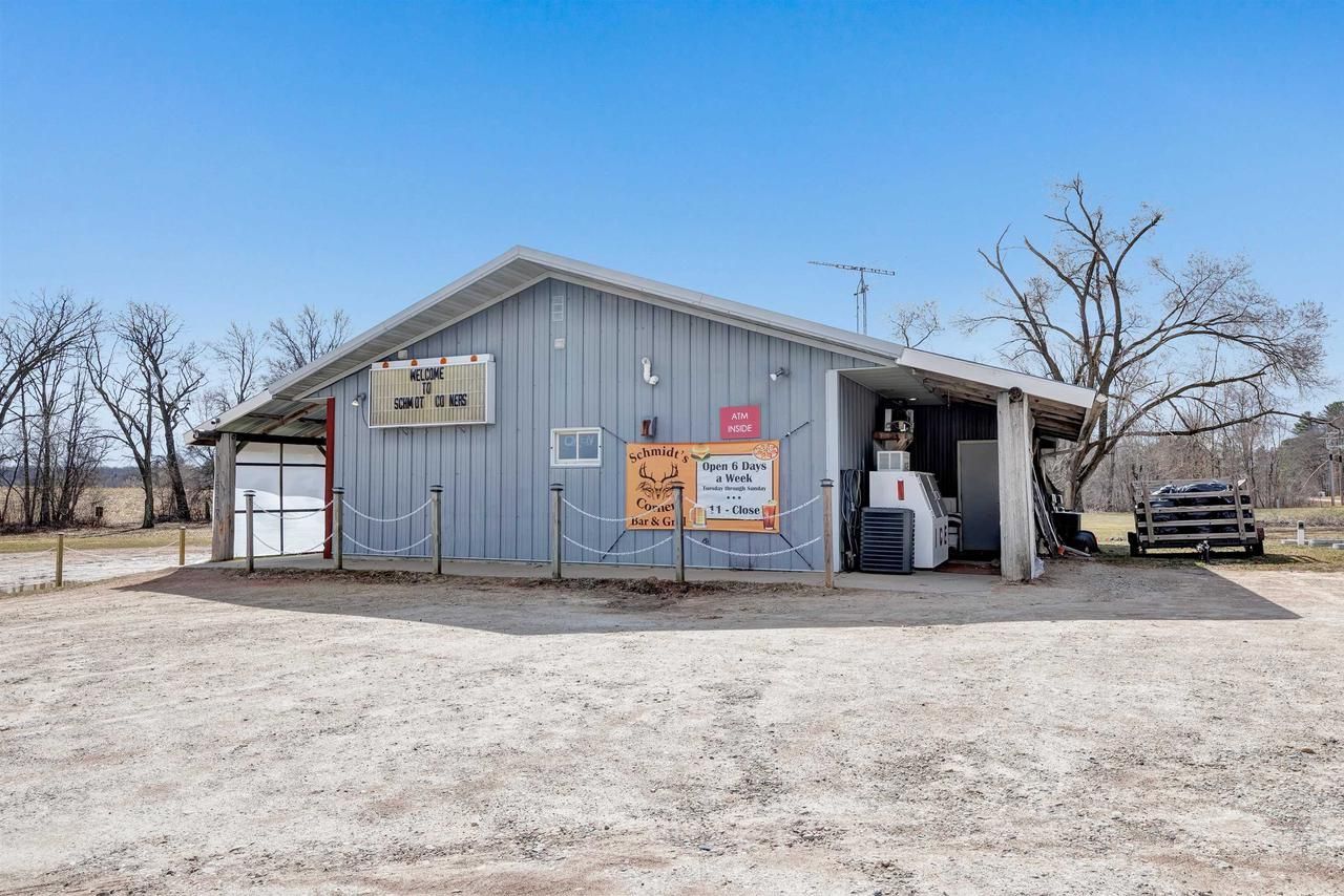Looking to run your own bar and grill and be your own boss? This could be the perfect opportunity. Schmidt's Corners is a well-established bar and grill located near Iola, WI, offering a turnkey setup with everything included as shown in the photos and video?ovens, grill, fryers, pizza ovens, dishwasher, refrigerators, freezers, TVs, bar stools, and more (food and alcohol inventory negotiable). Situated on 4.6 acres, the property provides room for expansion, such as a small campground, storage units, or other income-producing ideas. Located directly on the snowmobile trail, it benefits from strong winter traffic. A brand-new well has been installed, and the septic system is only a few years old. Call today to schedule your private showing.